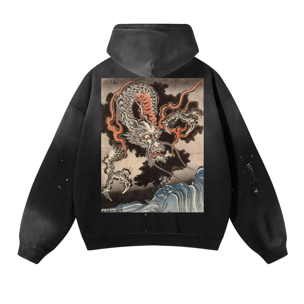 vintage wash frayed fleece hoodie